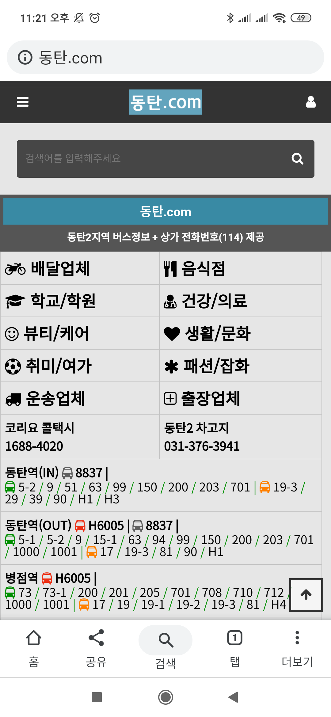 네이버 앱에서 네이버 검색을 하지 말고 주소 적는 곳에 "동탄.com" 을 입력해서 사이트로 접속 합니다.