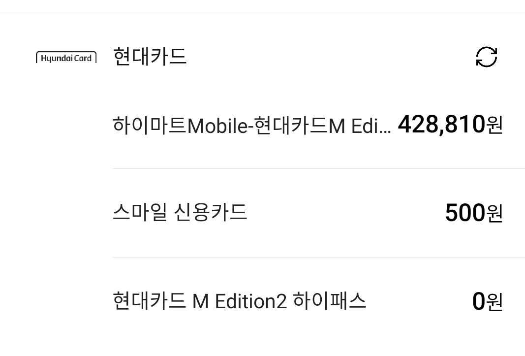 위와 같이 현대카드 3개 보유하고 있습니다.