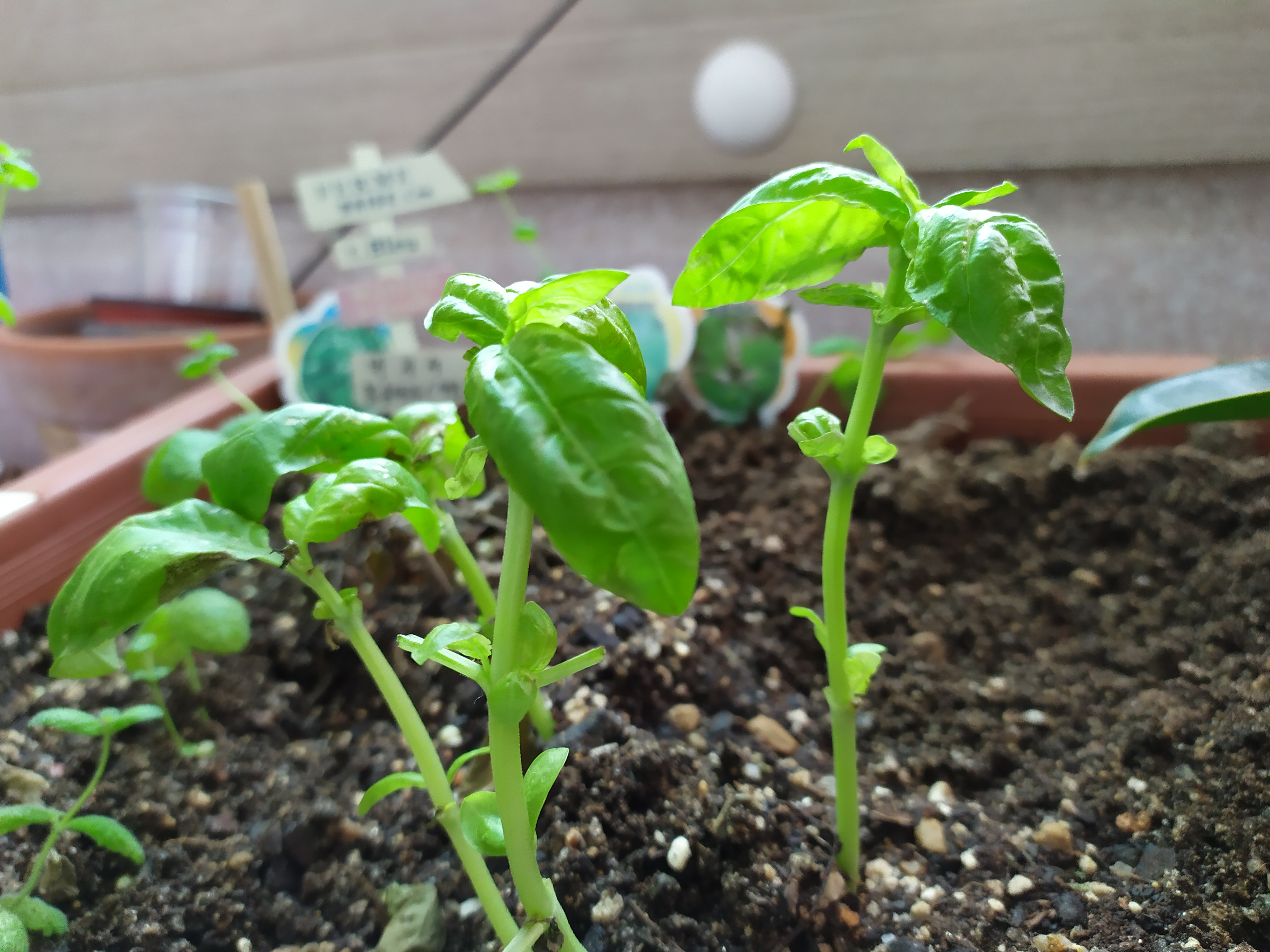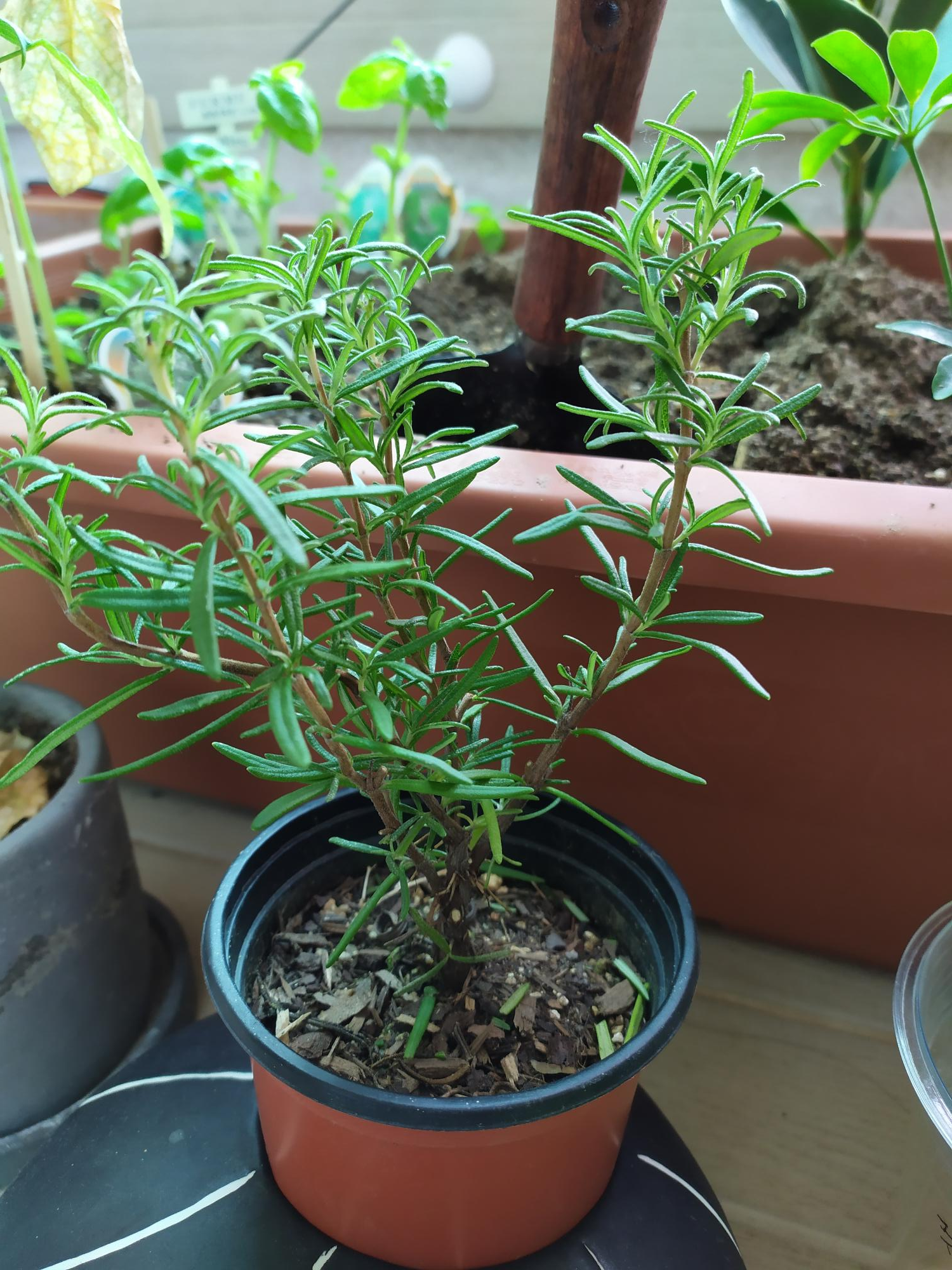 배란다에 있는 로즈마리와 바질을
