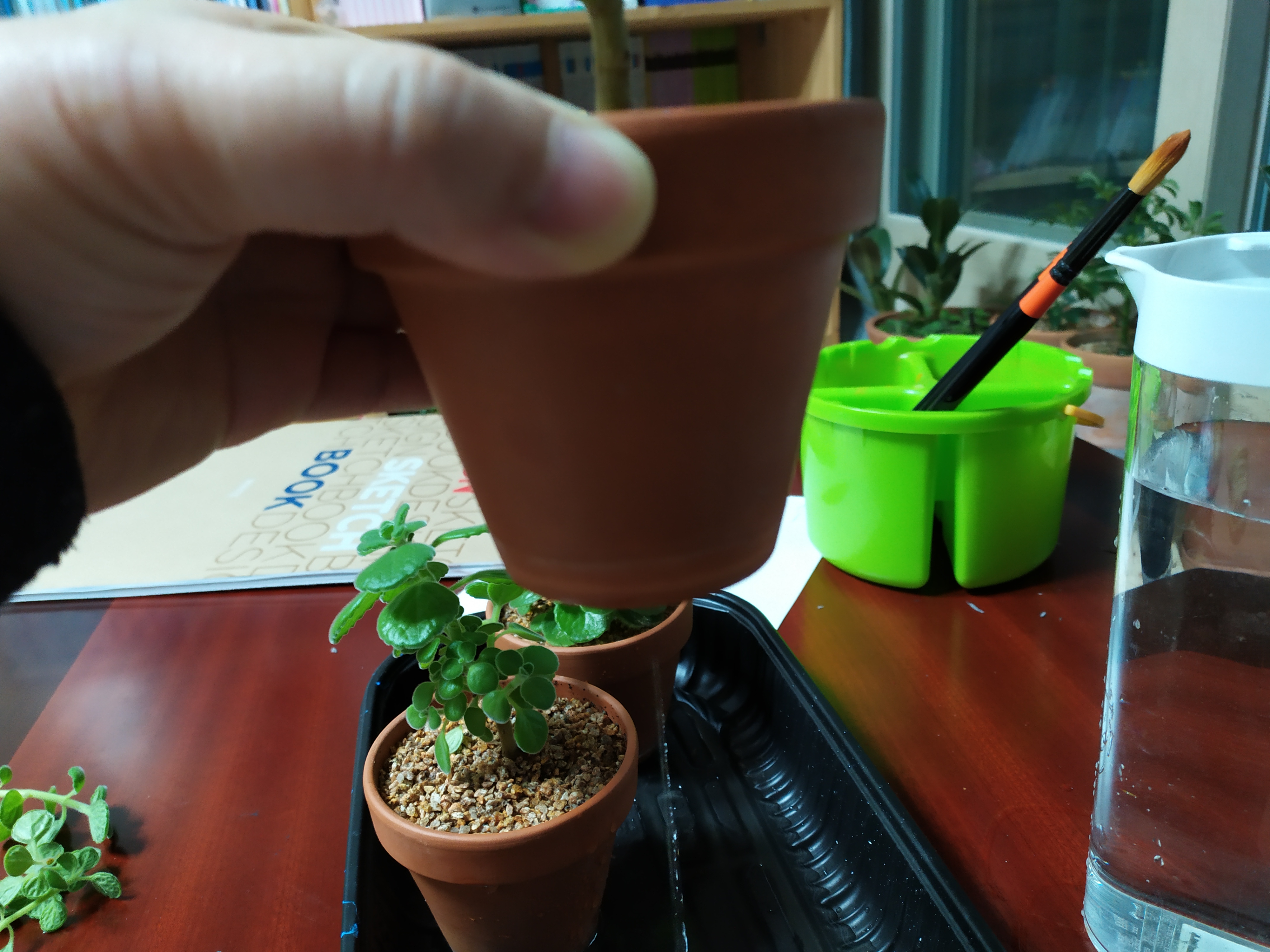 물이 금방 빠져서 흙이 얼마나 머금고 있을까란 생각도 해보지만 화분이 흙으로 만들어진 토분이라 토분도 물을 흡수하고 있습니다.