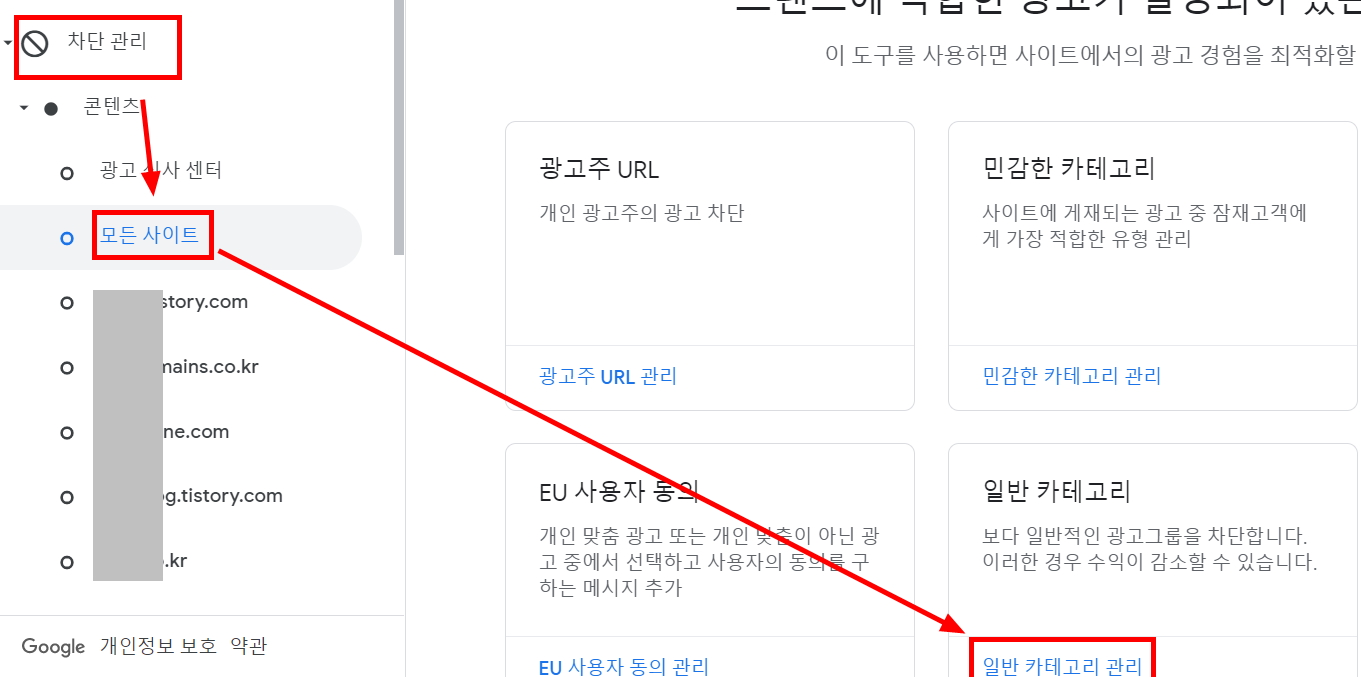 선정성 때문에 남성들의 클릭율이 높아 질 수 있겠지만 블로그 관리를 위해 차단을 해야 한다면 애드센스 광고 관리하는 곳에서 간단하게 설정 할 수 있습니다.