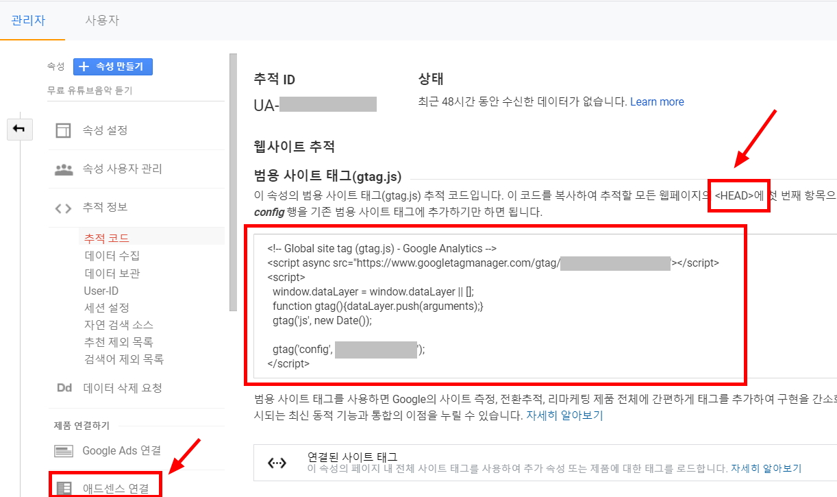 구글애널리틱스 추적코드(ID)는 이곳에서 확인 가능합니다.