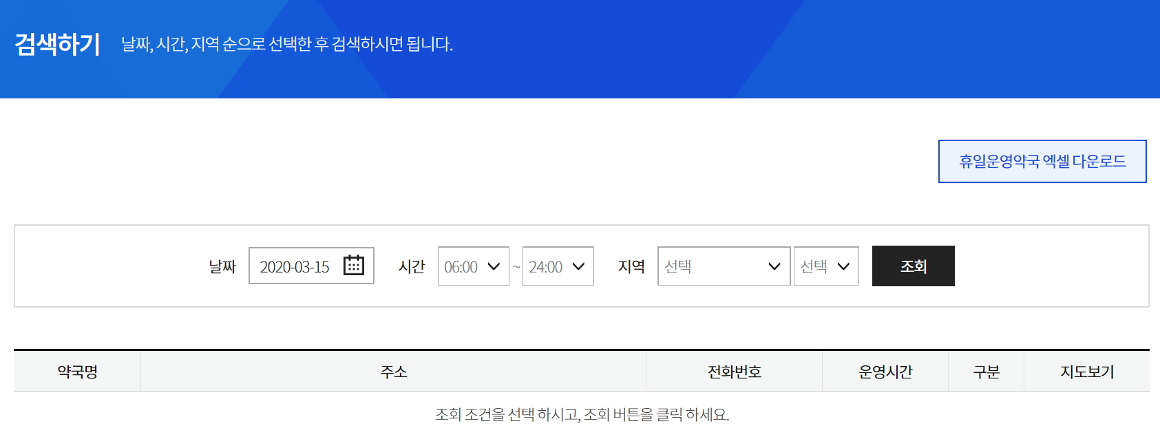 휴일지킴이약국 검색하기