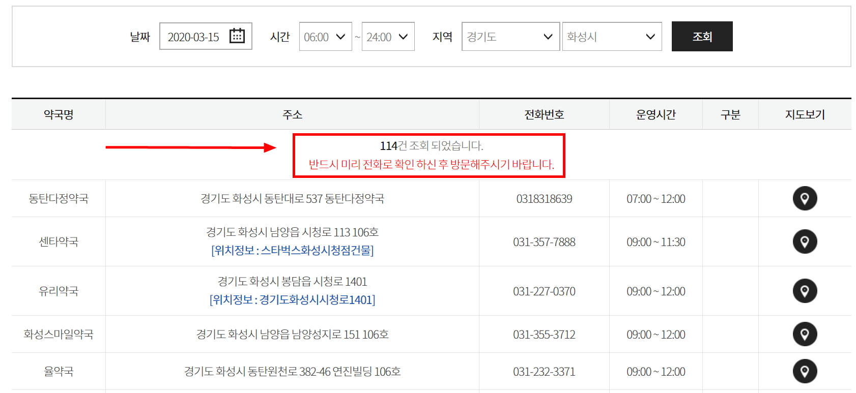 그럼 내 집 근처 문연 약국이 어디인지? 검색하면 되네요.