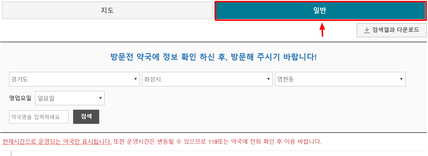 약국검색을 지도 & 일반