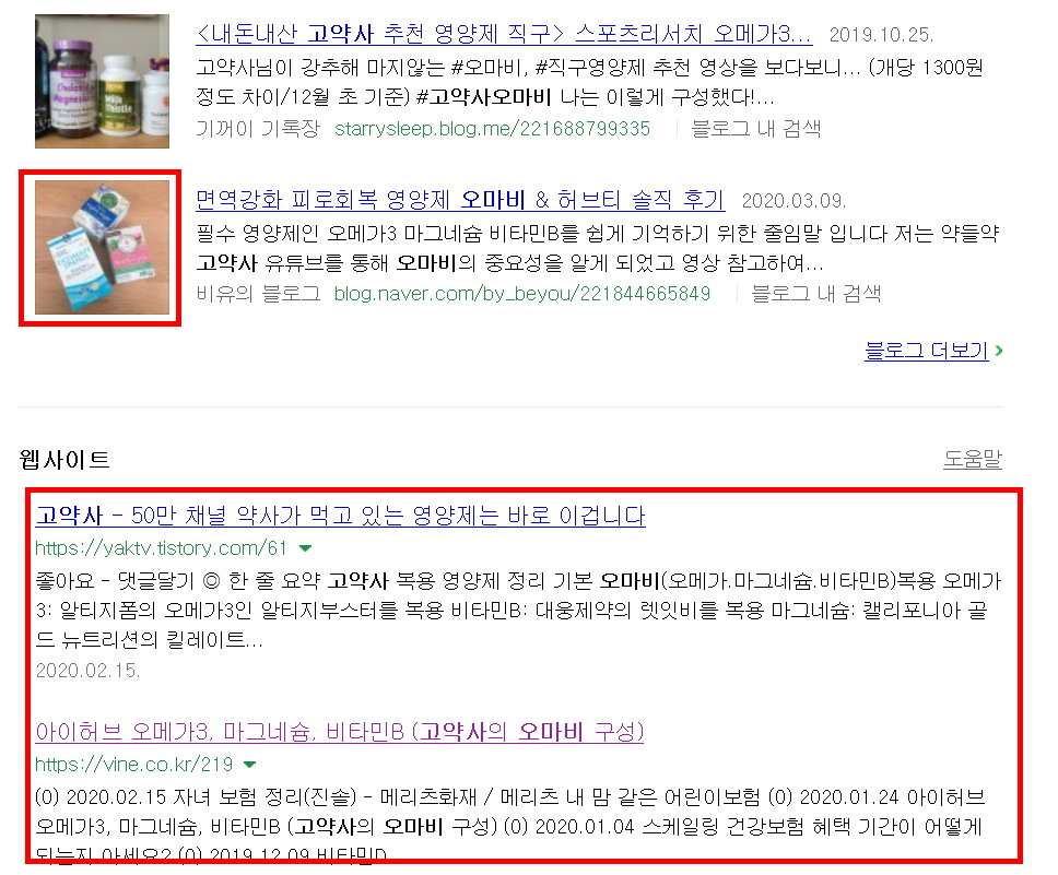 아래 네이버에서 검색한 결과를 잠시보면 네이버 블로그는 대표이미지를 노출되어 신경쓰면 클릭율에 도움이 됩니다.