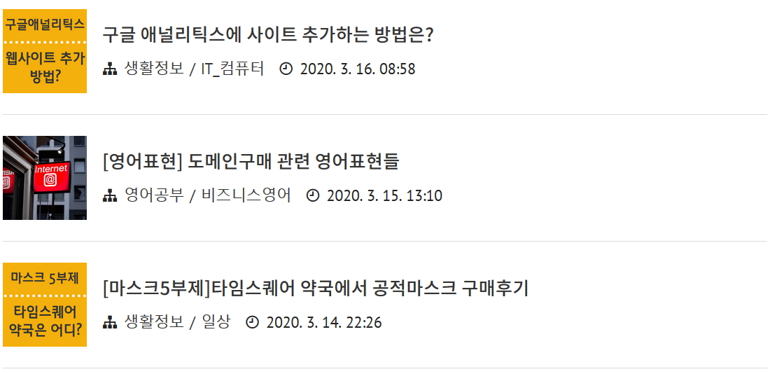 현재 제가 티스토리에서 대표이미지를 신경써서 포스팅 하고 있는 모습은 아래와 같습니다.
