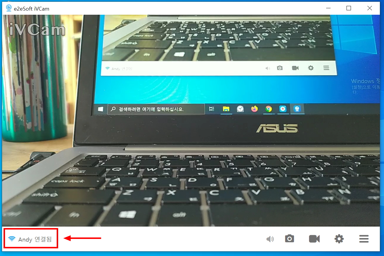 핸드폰 카메라 모습이 그대로 노트북에 보입니다.