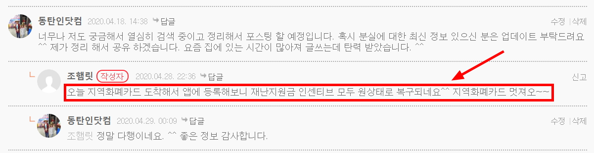 >> 지역화폐 재발급 후 앱에 등록 하면 기존 보유하고 있던 금액(재난지원금 포함) 정상적으로 복구 됩니다.