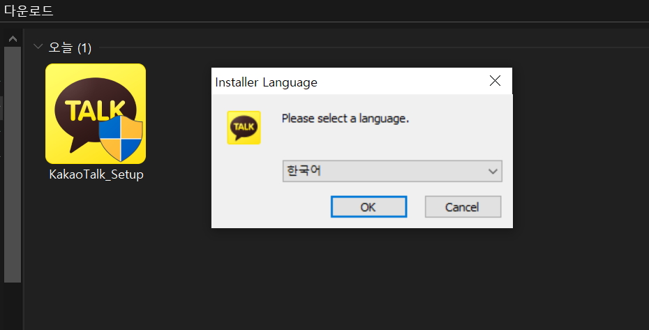 위 카카오 공식홈페이지에서 최신 카카오톡 PC버전을 다운 받은 후 실행 하면 언어선택을 가장 먼저 하게 됩니다.