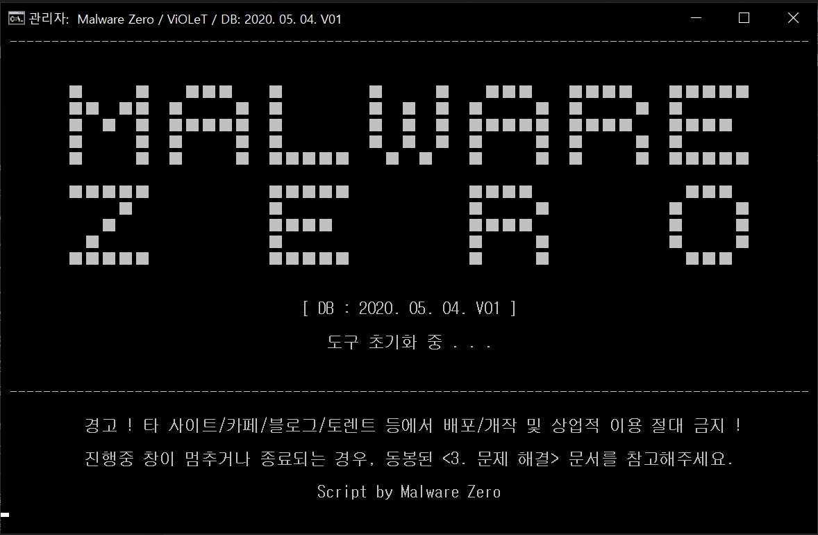 관리자권한으로 프로그램을 실행하면 한동안 아래와 같은 검색색 도스창 같은것이 보이는데, 스크립트 초기화를 진행 하고 있는 단계 입니다. 검사를 위한 사전 세팅이라고 생각 하면됩니다.