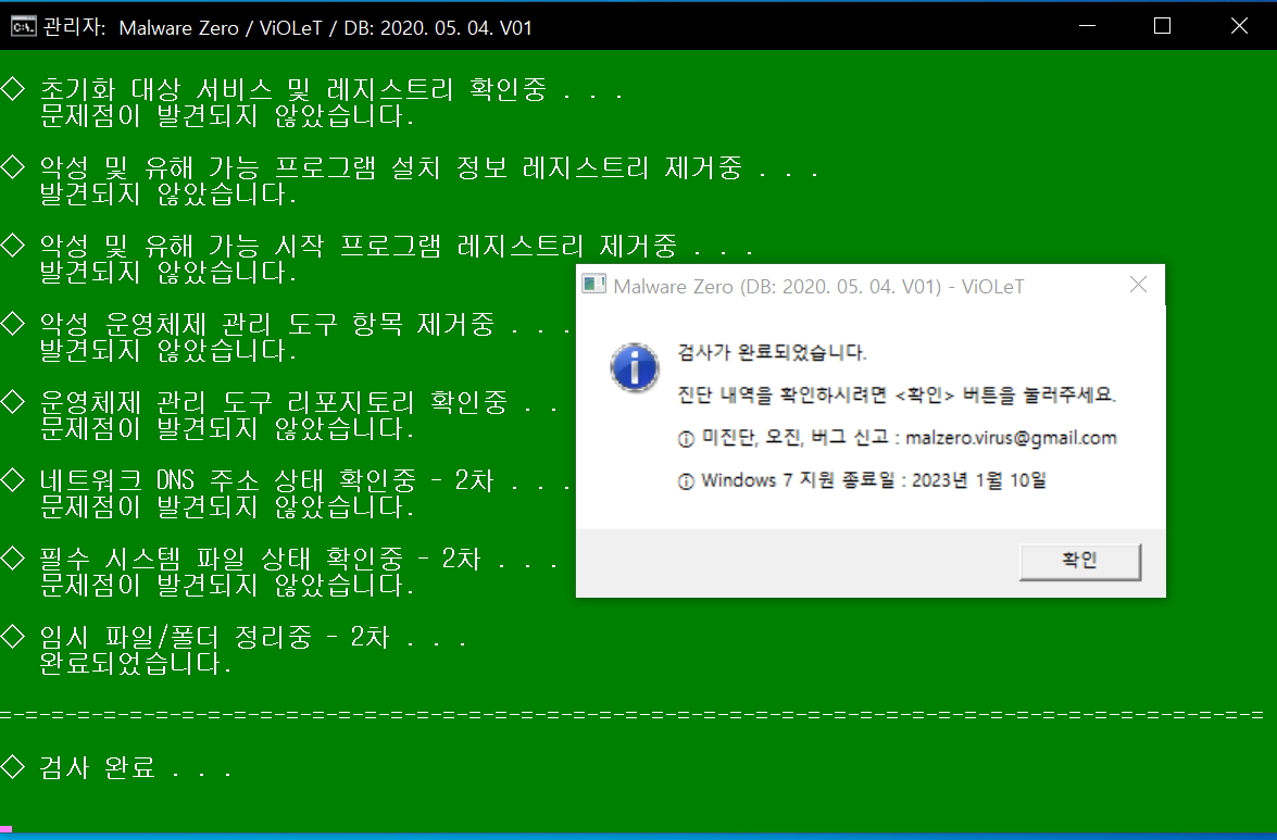 검사가 진행 되고 시간이 꽤 흐른 후 아래와 같이 검사가 완료 되었다는 안내가 나오면 모든것이 끝난 것이다.