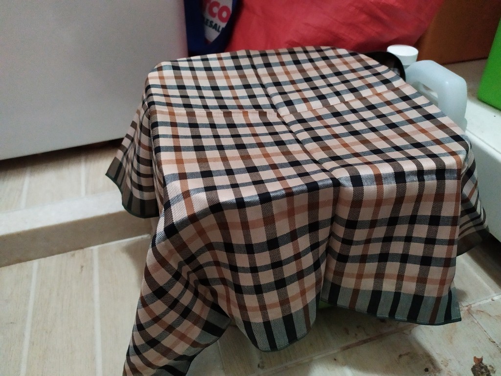 그래서 아파트내 세탁실 바닥 한곳에 아래와 같이 세팅 해 두었습니다. 창은 열어 두어 공기는 잘 통하게 했고 원래 어두운 곳이지만 혹시나 해서 집에 놀고 있는 손수건으로 덮어 두었다. 너무 답답해 할 수도 있어서 살짝 열어 둘때도 있고 ^^. 검은색이면 암막 효과가 확실 할텐데... 그런 천이 없어서 그냥 손수건으로 덮어 두었다.