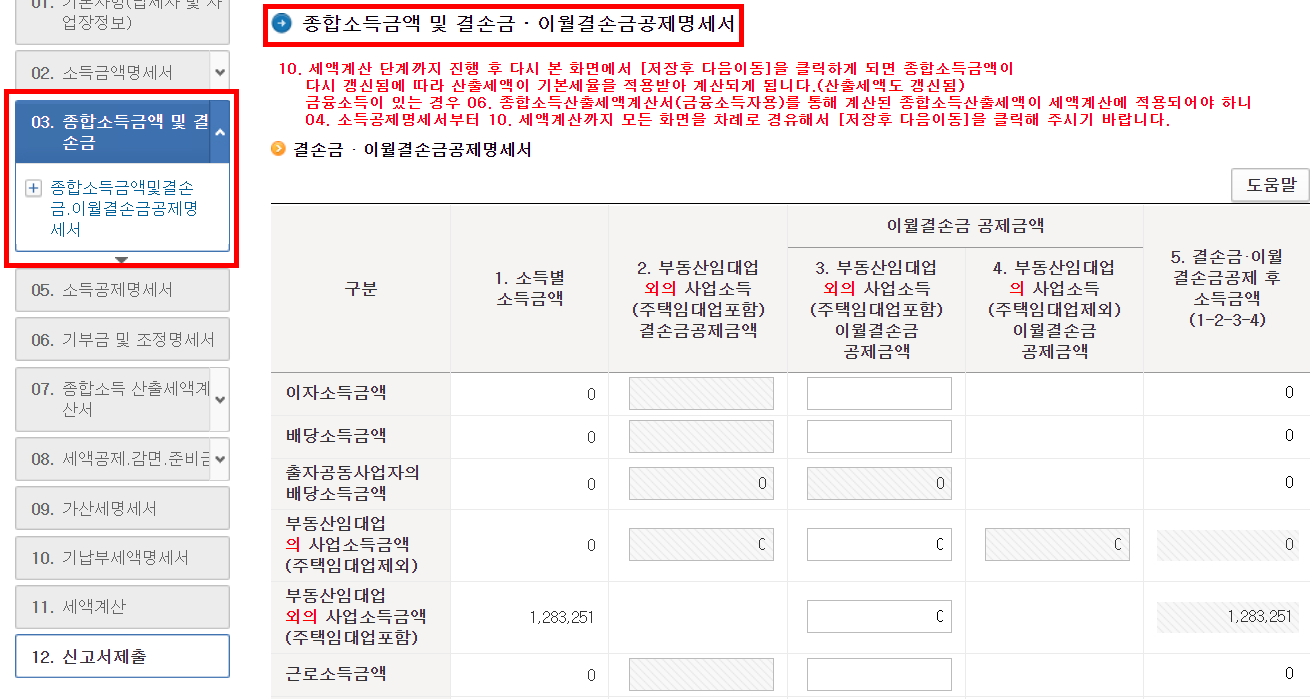 - 부동산 임대소득 명세