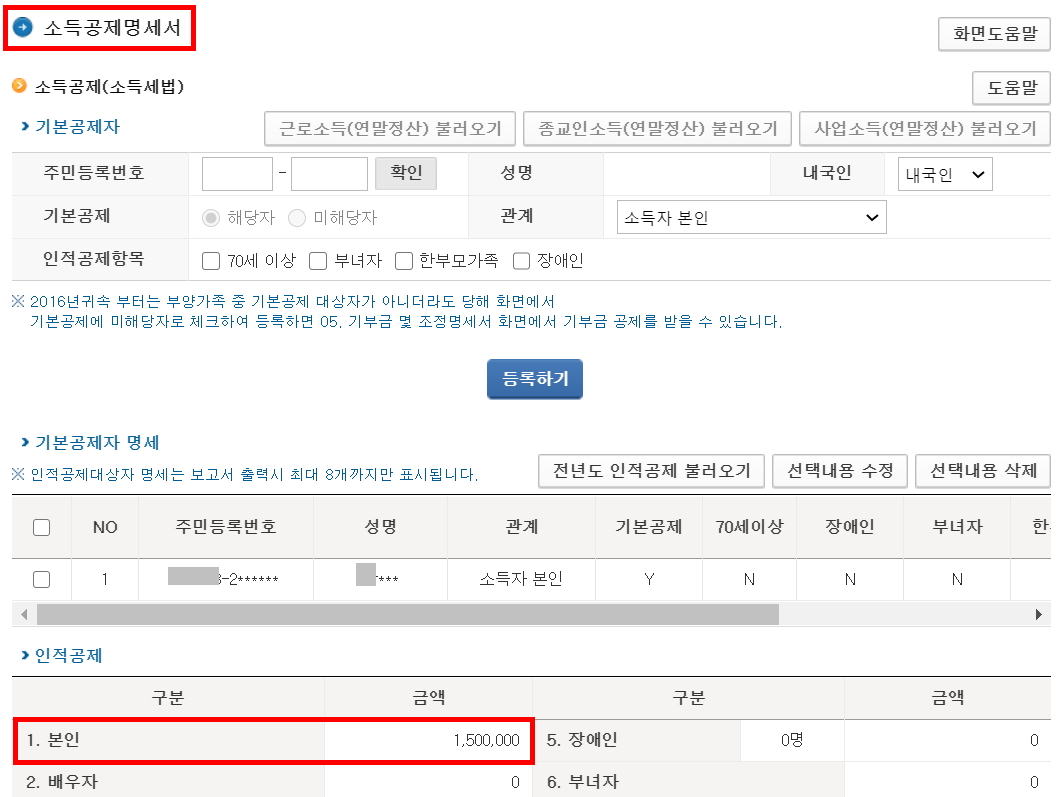 소득공제명세서