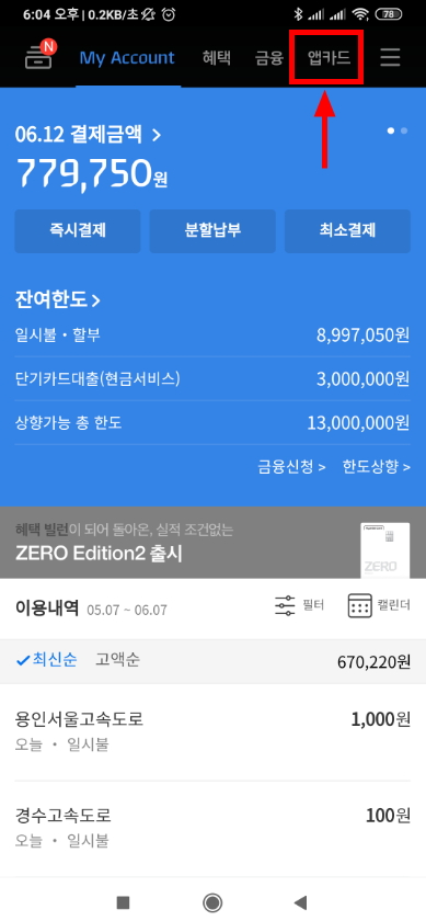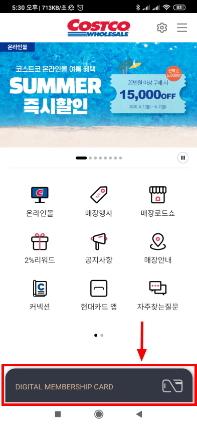 코코카드 뿐만 아니라 코스트코에서 결제를 위한 현대카드도 핸드폰으로 넣고 다니면 편합니다.