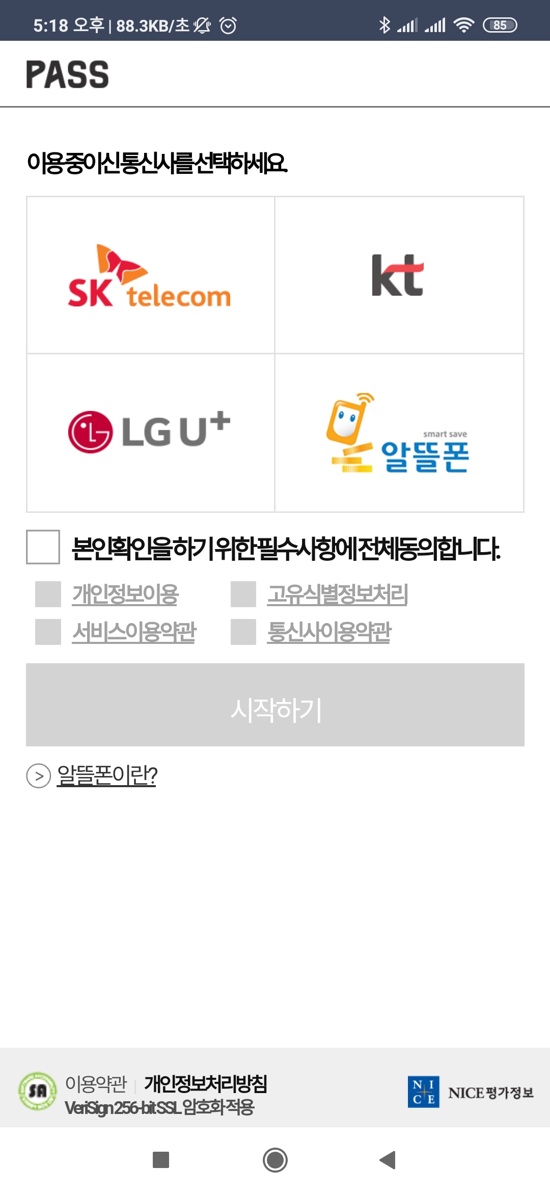 핸드폰 본인인증 절차 단계 입니다. 본인소유의 핸드폰에 등록해야 들고 다니는 의미가 있겠죠?