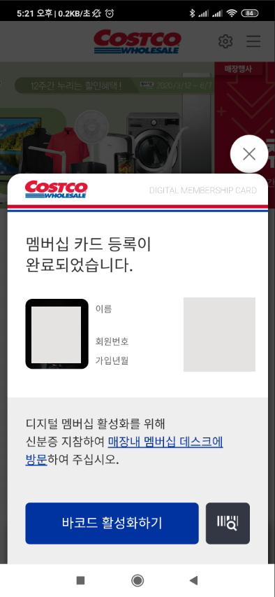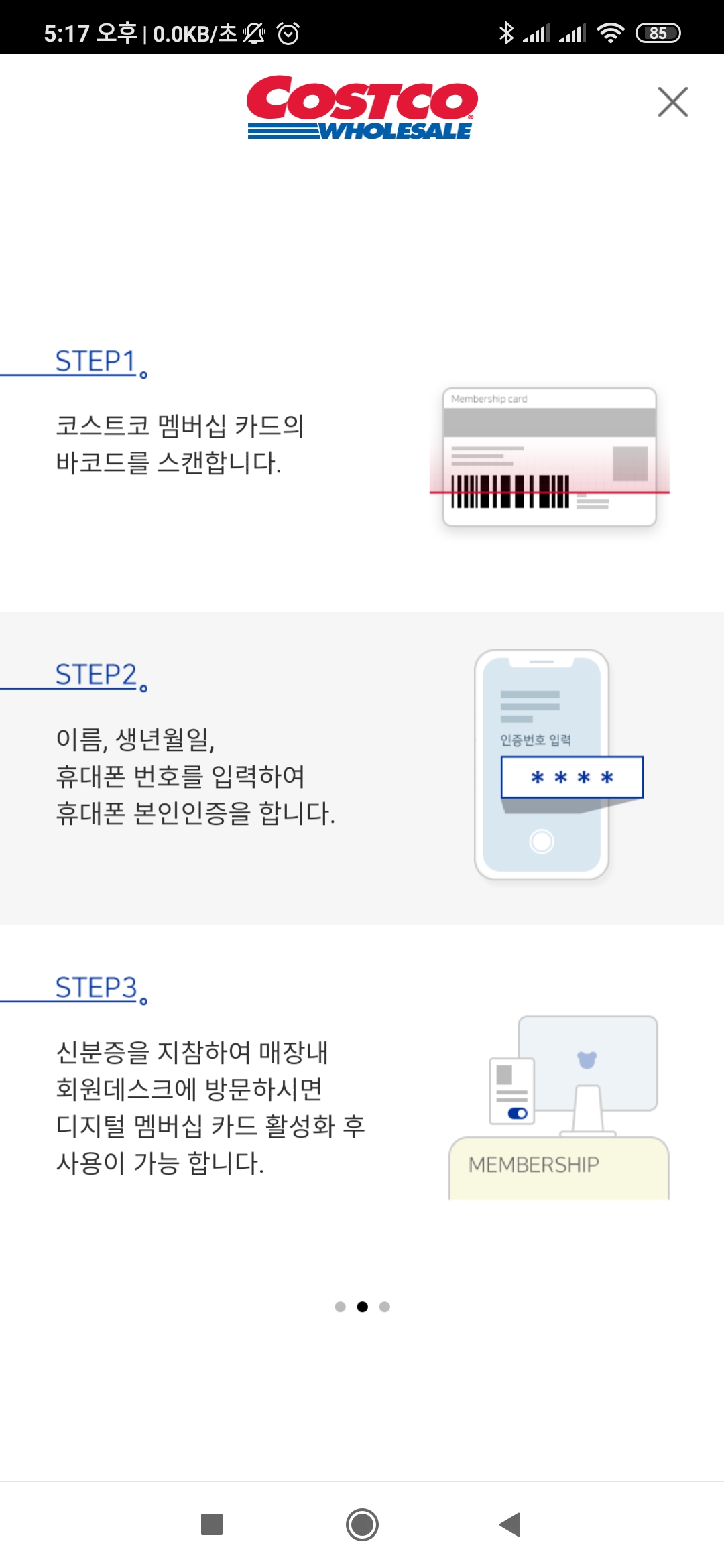 코스트코 멤버십카드를 앱에 등록하는 절차는 아래와 같이