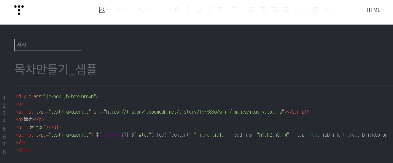 이제 티스토리 블로그에 자동으로 목차 만들기 사전 준비작업을 모두 마쳤습니다.