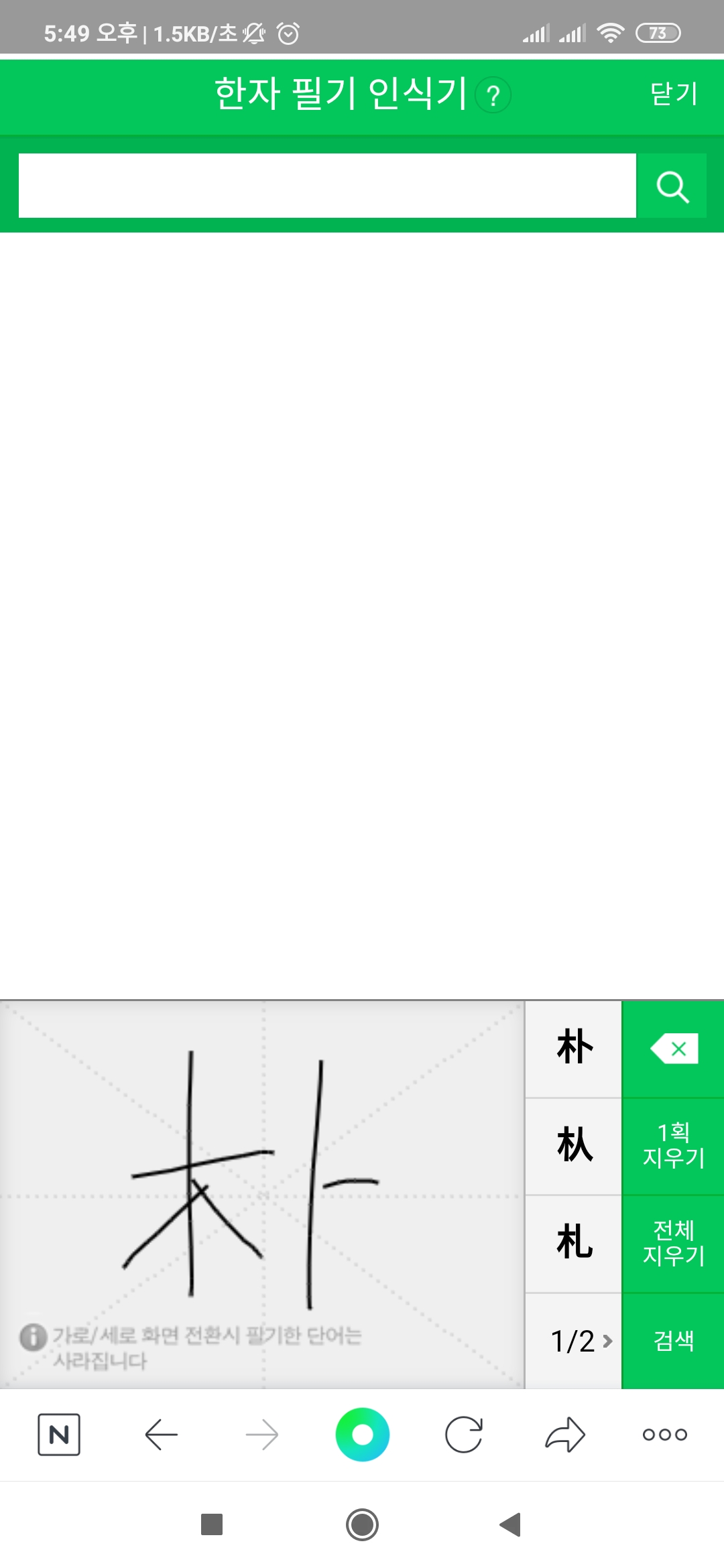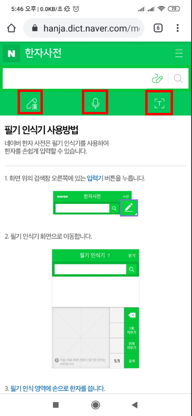 네이버 한자 필기입력기 모바일 버전
