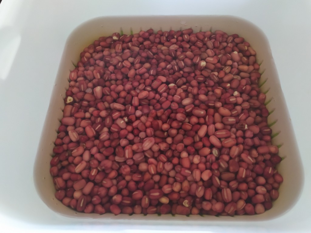 아래 사진은 뭘까요? 어제부터 팥을 물에 불리고 있습니다. 다음 도전 요리 재료 같네요. ^^