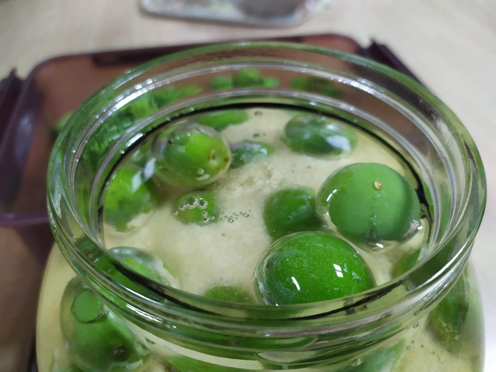 일주일 정도 될때까지 설탕이 잘 녹을 수 있도록 2~3일에 한번씩 병을 뒤집어 주면되고 매실이 쭈굴쭈굴하게 변하는데 정상이니 안심해도 됩니다. 설탕이 완전히 다 녹으면 더 이상 저어 주거나 병을 뒤집어 줄 필요없이 숙성만 잘 되도록 해 줍니다.