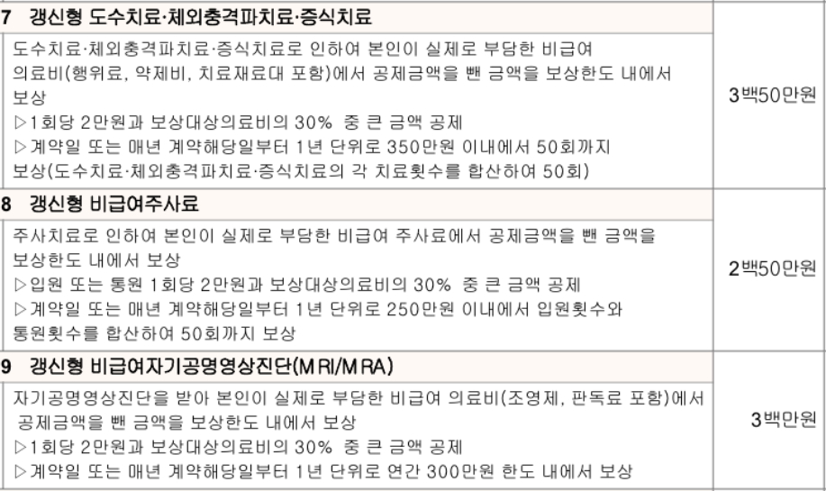 -> 다른 검사 비용은 통원 실비 특약에서 보상(1일 한도내, 본인 부담금 공제)