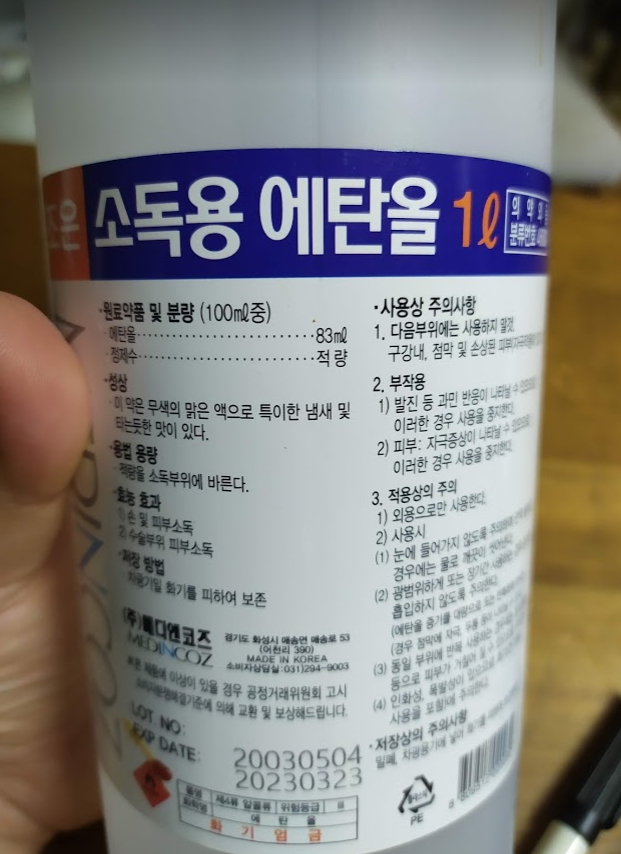 요즘 코로나때문에 에탄올과 손세정제가 집에 하나씩은 있을 거에요. 이 성분이 네일리무버 처럼 강력한 소독력과 휘발성이 있어 유성매직 지울때 사용하면 효과가 있습니다.