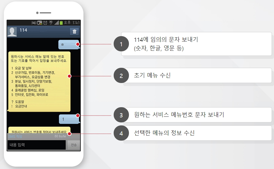 - 휴대폰에서 국번 없이 114로 문자를 보내 이용 할 수 있는 서비스.