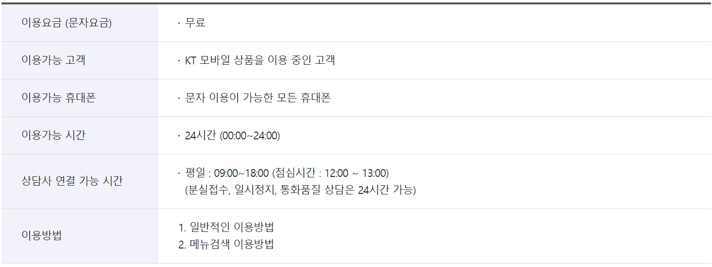 - 문자요금 무료(KT 모바일 고객)