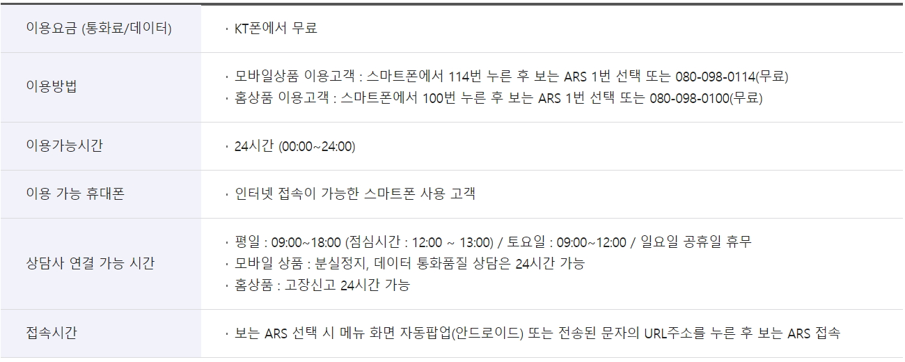 KT전화국 고객센터 - 보는 ARS 고객센터