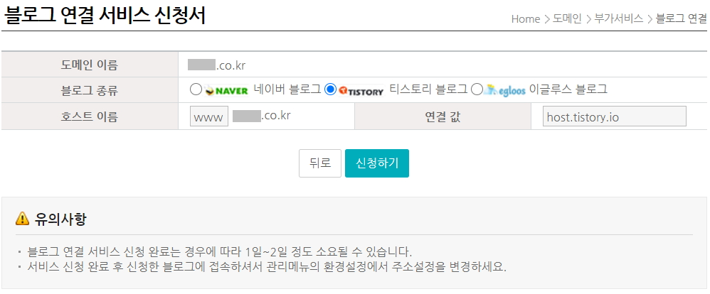 티스토리에 도메인 연결 - 호스팅케이알 편(2020년)