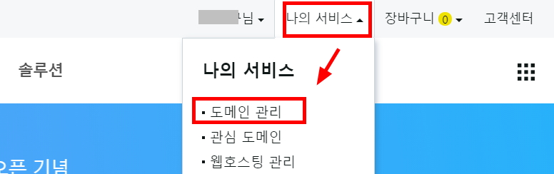내 도메인 목록 중 연결 할 도메인을 선택 후 하단 메뉴 중 블로그자동연결을 선택 합니다.