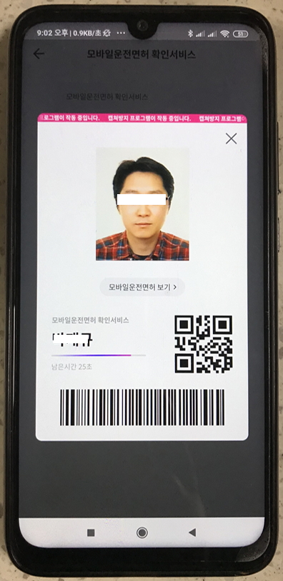 - 내 면허증 정보가 담긴 바코드와 QR코드가 생성됩니다.