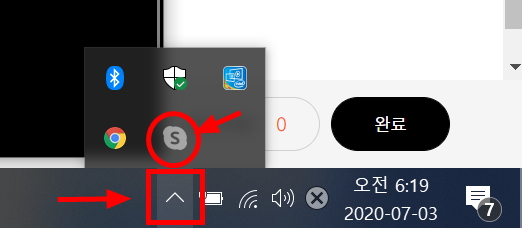 컴퓨터 우측하단 화살표 모양을 누르면 현재 실행되고 있는 앱(프로그램)이 보입니다.