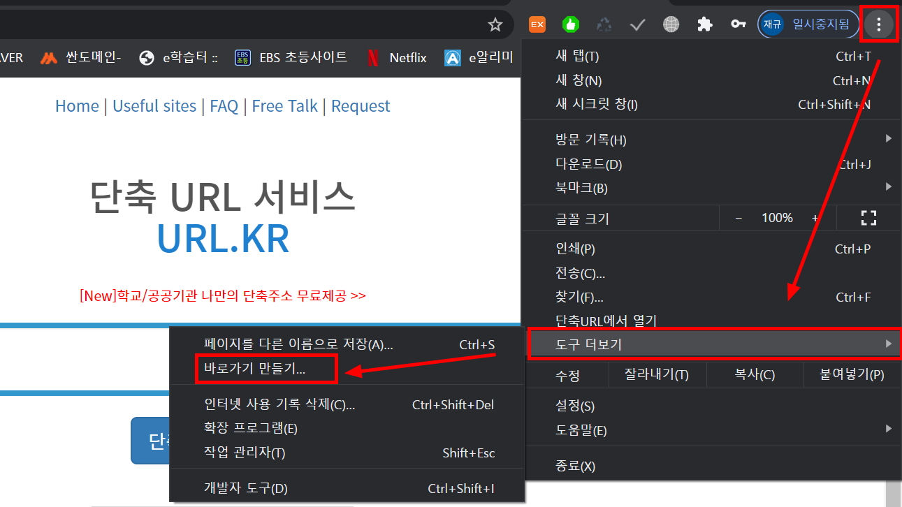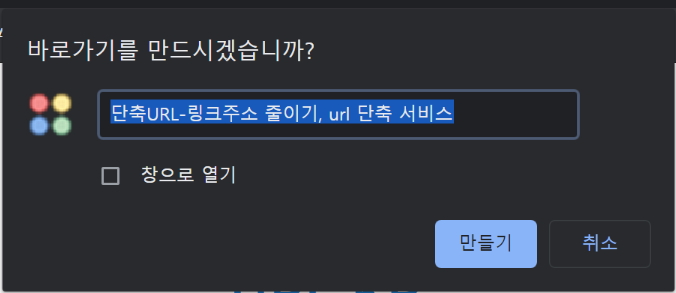 크롬브라우져 기준으로 설명드리면 url.kr 사이트 접속 후 바로가기 만들기를 합니다.