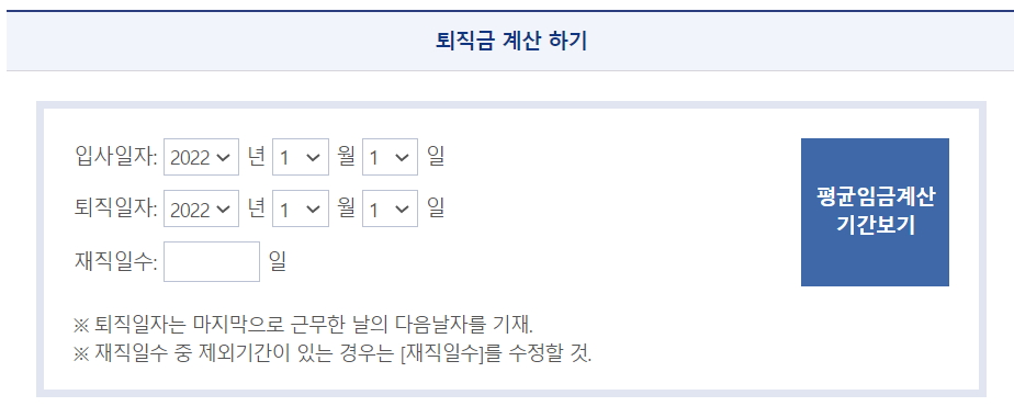고용노동부 퇴직금 계산기