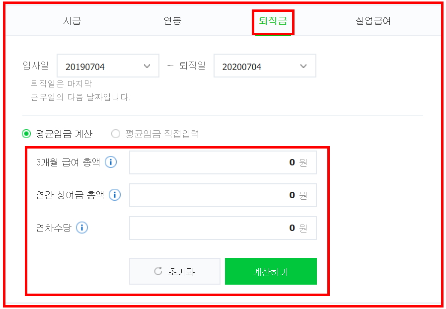 네이버 퇴직금 계산기