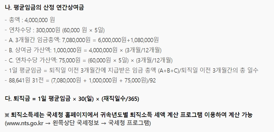 퇴직금 계산 예제