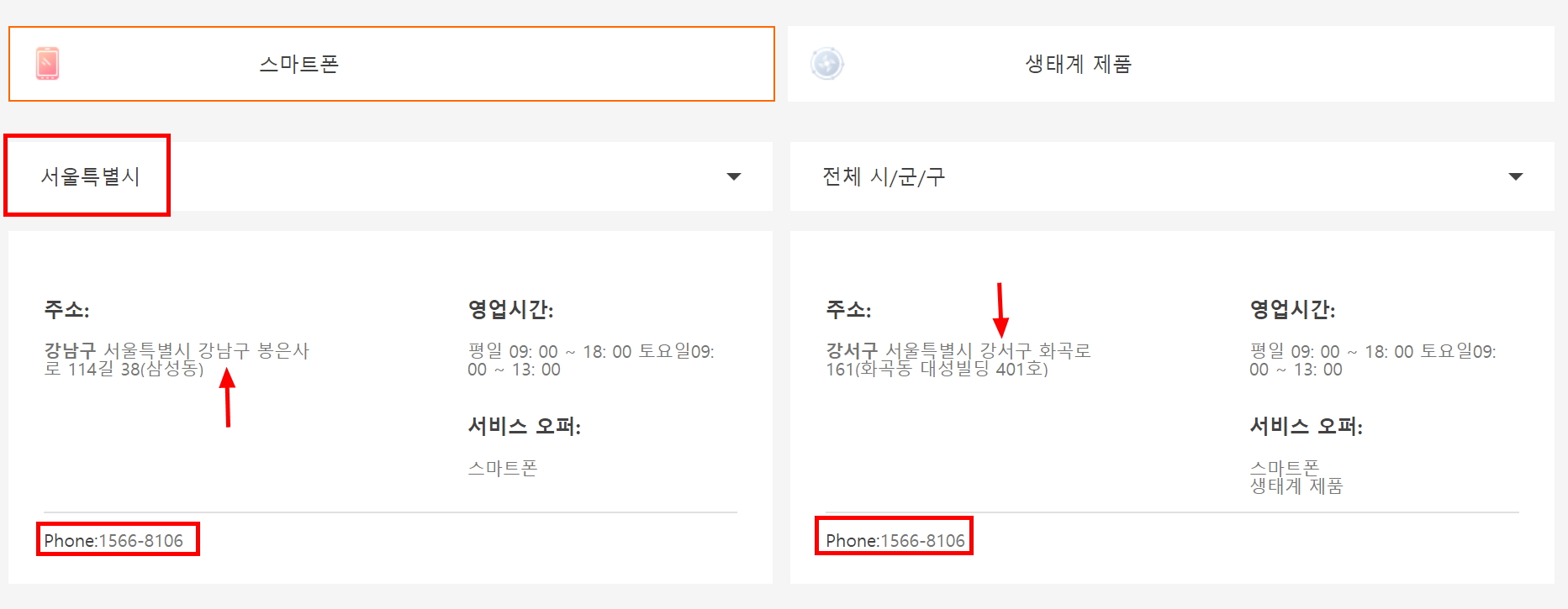 현재 서울에는 강남/강서 지역에 샤오미 서비스센터가 있네요.